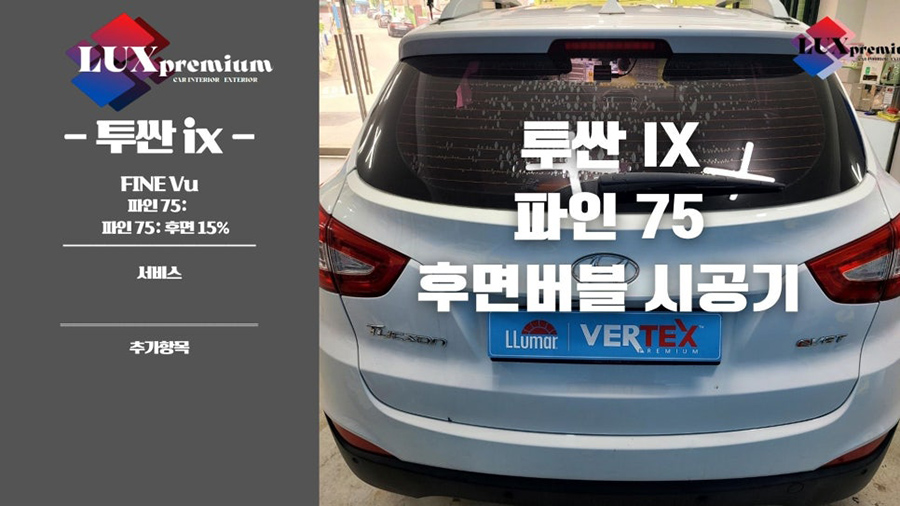 | 시공차량: 현대 투싼 | 후면열선: FINE 75 15% | 측면2열: - |